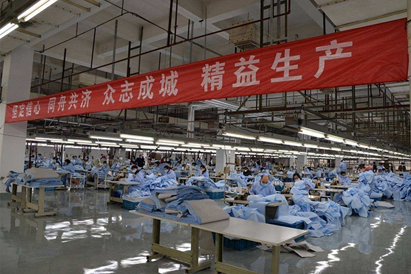 抗“疫”之下,南方作為主要生產(chǎn)地區(qū),廣東佛山等多家服裝企業(yè)“轉(zhuǎn)戰(zhàn)”防護服,思諾華制衣廠專業(yè)20年沖鋒衣、滑雪服等戶外服裝的生產(chǎn)廠家,緊急轉(zhuǎn)換為防護服工廠,每天出貨1000件防護服為一線人員送去“愛”。