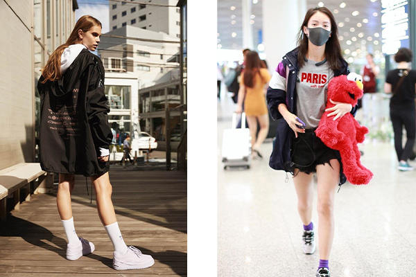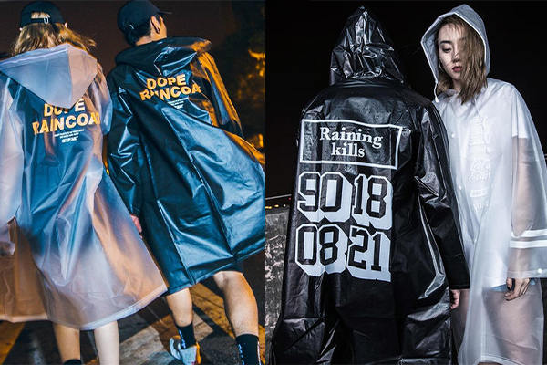 這是滿常見的一款,但同時也是最具風(fēng)格性的。在普通的穿搭,只要套上透明雨衣式的沖鋒衣,都可以化腐朽為神奇!利用內(nèi)搭上衣來避免撞衣的窘境,如圖左整套式的透明搭配,以頭跟腳的黑色配件來強化對比;圖右則是在亮橘色的衛(wèi)衣外,罩上透明黑邊的沖鋒衣,點亮了原本較單調(diào)的穿搭;圖中的下身選擇簡單的五分短褲,加以凸顯上半身的半透明沖鋒衣之特色。